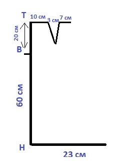 - Отрезок ТН равен Ди (длинне изделия) = 60 см;