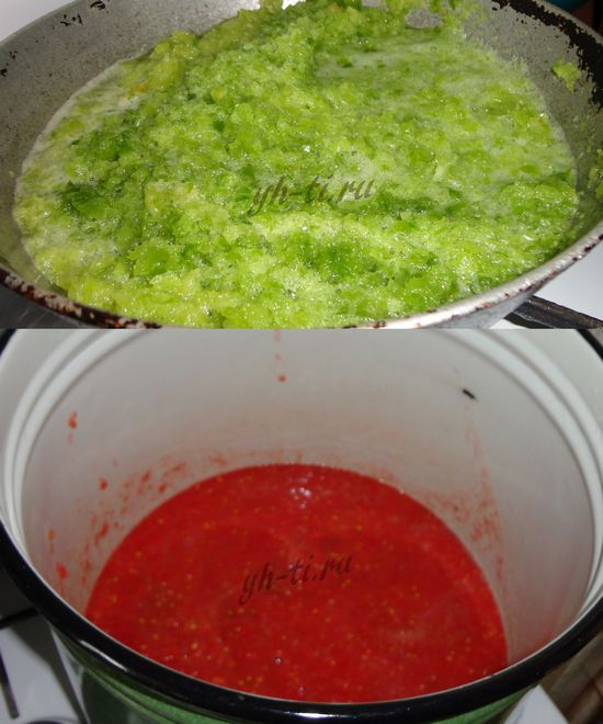 Перец хотела тоже порезать, но силы уже начали покидать меня, 🙂 поэтому пропустила его тоже через мясорубку, если будете добавлять стручковый острый перец, его тоже нужно будет прокрутить. Позже поняла, что и с луком можно было поступить так же, ну да ладно.