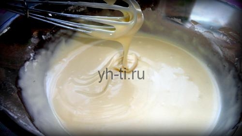 Крем для нашего бисквита очень прост: нужно смешать сметану и сгущенку в соотношении 1:1. Если вы любите осень сладкий крем, то можно добавить сгущенки побольше. И наоборот – любителям умеренно сладкого крема рекомендуется добавить больше сметаны.