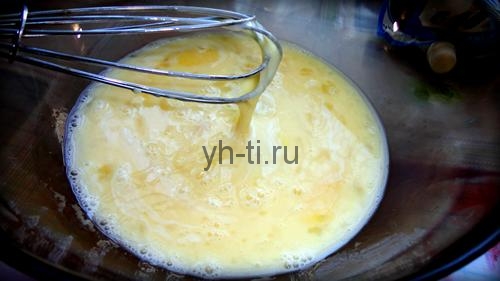 В глубокой чашке взбейте 2 яйца, затем добавьте к ним сгущенку и хорошенько примешайте все вместе. После этого возьмите соду — четверть чайной ложки, добавьте в нее лимонный сок. Перемешайте соду с соком лимона и добавьте в тесто.