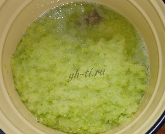 В большой кастрюле ставим кабачки с луком на огонь и тушим в течение часа. Не забываем помешивать.