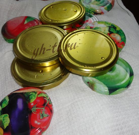 Пока икра тушится, кипятим крышки. Банки, заранее хорошенько промытые, я просушила в духовке.