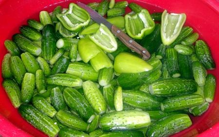 Моем и чистим огурцы и перец