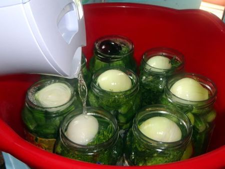 Заливаем огурцы кипятком