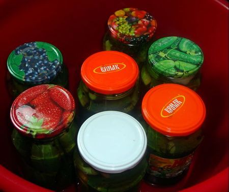 Плотно закручиваем банки с мариноваными огурцами крышками