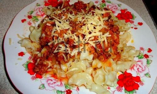 Когда все будет готово, в тарелку положите пасту (макароны), щедро полейте ее соусом болоньезе и присыпьте все тертым . Бон аппетит!