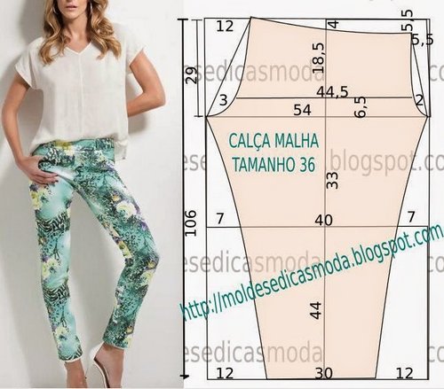 Вариант №3. И еще несколько выкроек леггинсов в чертежах с расчетами под каждый размер. Внимание! Размеры для этих моделей португальские, таблица размеров прилагается ниже.