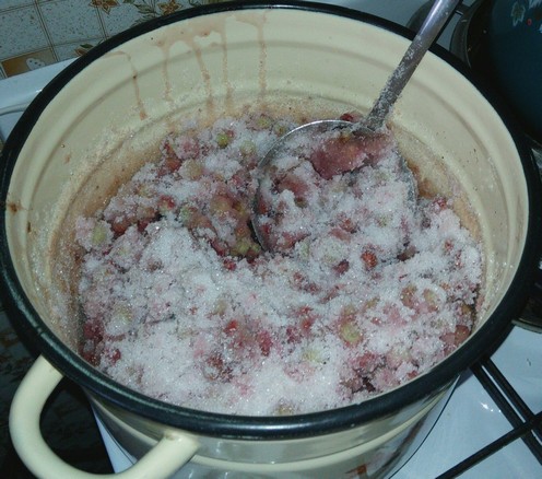 Перемешиваем ягоду с сахаром и оставляем все это настаиваться на столе. Лучше всего оставить на ночь.