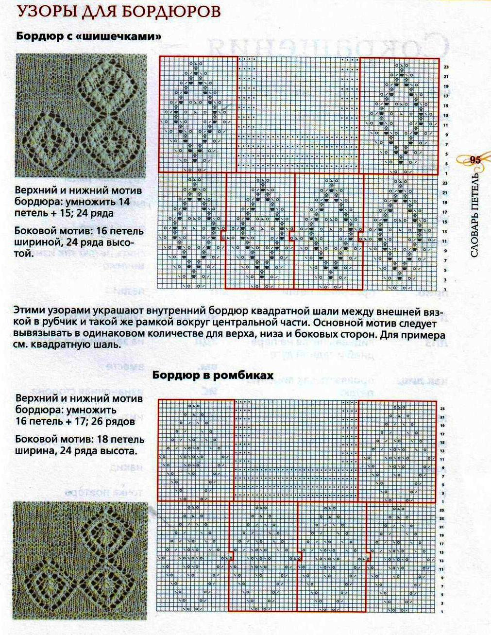 Чтобы расшифровать схемы шалей, обратите внимание на словарь терминов, опубликованный ниже.