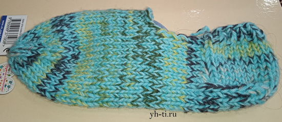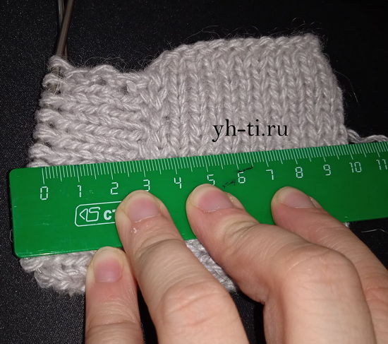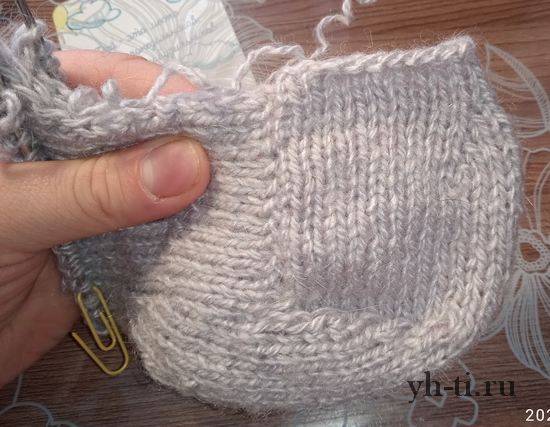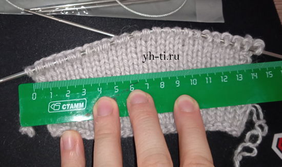 Поскольку толщина пряжи у всех разная, да и плотность вязания тоже, то ориентируемся по см. Ширина стенки пятки должна быть 14-15 см.