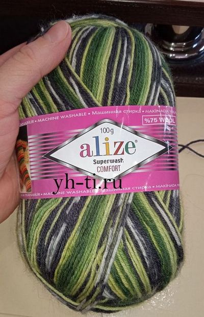 Голубые следки я вязала в 3 нити. Одна — Alize superwash, а две другие — Пехорка «Детский каприз».