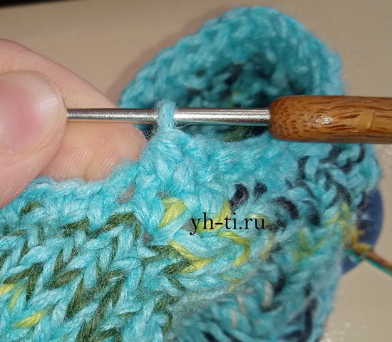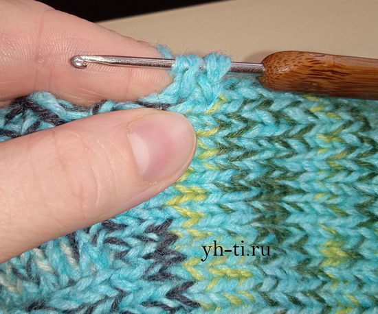 1 ряд: столбики без накида, Вытягиваем петельки из-под кромочных.