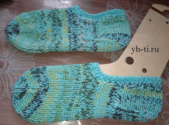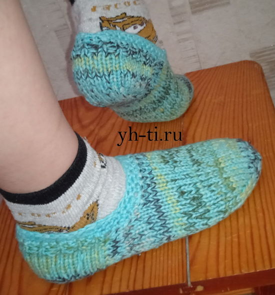 Когда то именно так вязала следки спицами. Очень удобные домашние тапочки.