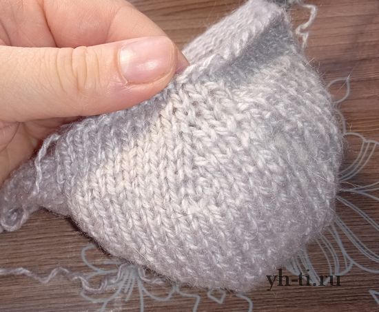 По две прибавки в 4-ом и в 6-ом ряду формируют углубленную стенку пятки