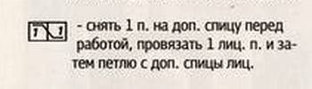 В начале 1 и 3 спицы провязываем первую петлю лицевой и делаем убавку с наклоном вправо (две петли провязываем вместе за задние стенки). В конце спицы, когда на ней останется 3 петли, делаем убавку с наклоном влево (две лицевые петли развернуть и провязать вместе за передние стенки). Последнюю третью петлю провязать лицевой.