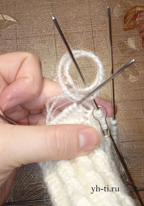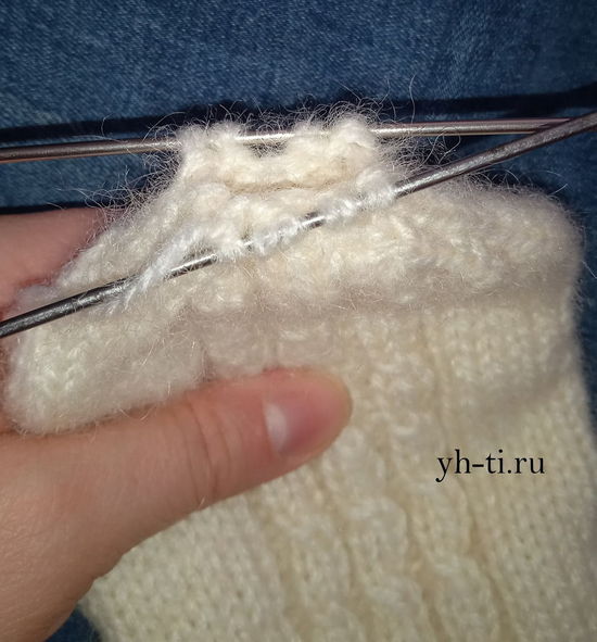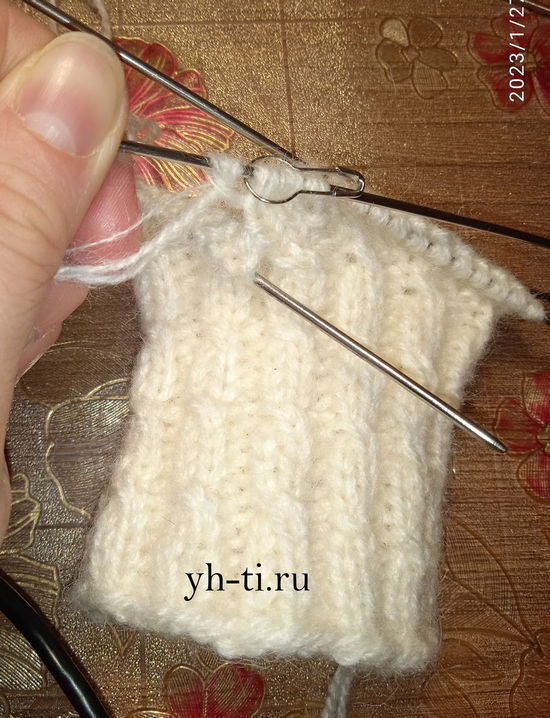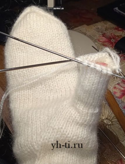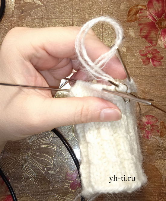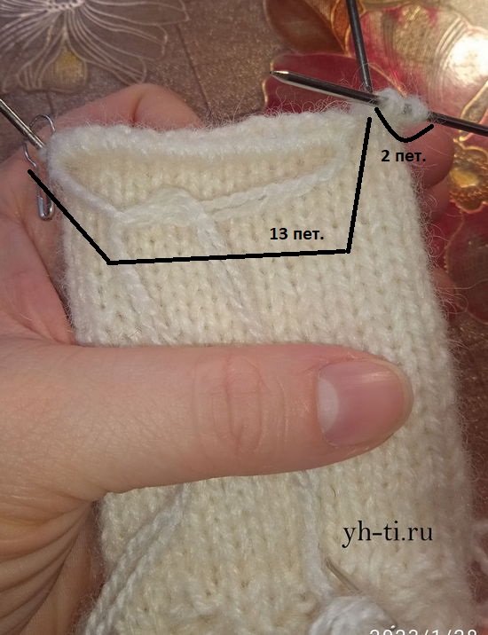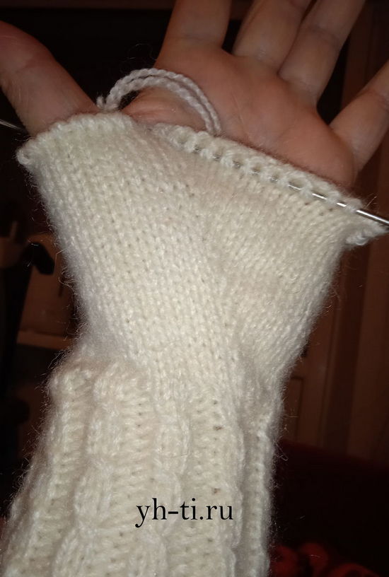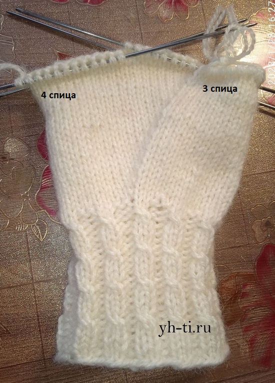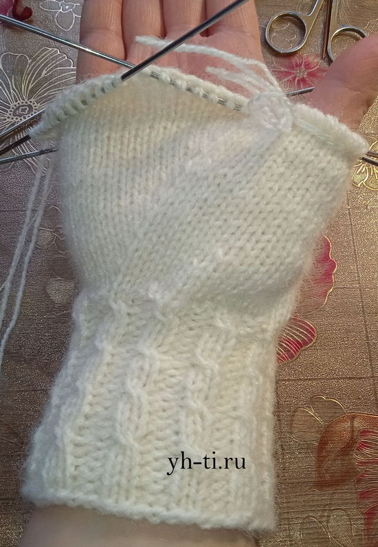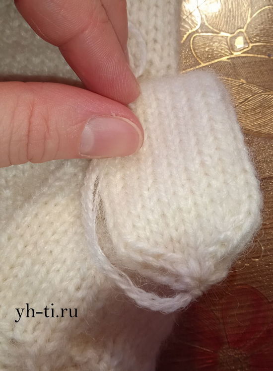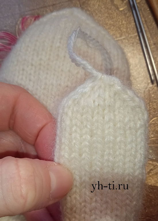 Для левой варежки эти две петельки будут оставлены соответственно слева.