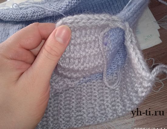 Так как изначально планировались разрезы по бокам, крайние три петли с каждой стороны пошли на формирование двойной кромки.