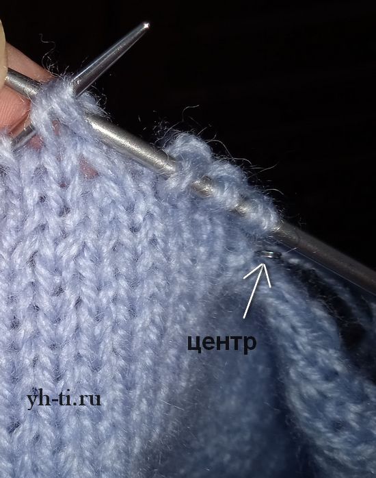 Убавки по центру планки делаем в каждом ряду. Если вырез не очень большой, то можно делать через ряд или даже через 2 ряда, как вам больше нравится. Как я убавляла: отметила 2 центральные петли. И делала убавки до них с наклоном влево и после них с наклоном вправо.