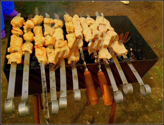 Я кстати готовлю шашлык следующим способом — беру в сельпо бутылку газированной воды, хлебушка ржаного, лука и черного перца с солью. Мяса не беру в сельпо, потому что что настреляю, такое мясо и будет — вчера вот медвежатина была к примеру (да и сегодня думаю она-же будет)