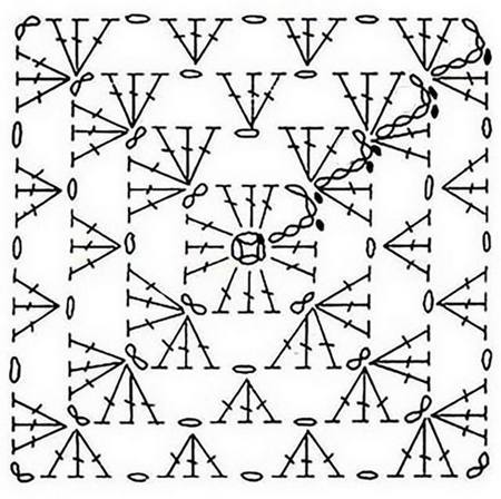 Чуть выше представлена схема мотива, она очень простая. Может возникнуть сложность только в том, как лучше делать переходы на новый ряд. Поэтому покажу этот момент подробно. Я нарисовала свою схему, где показала переход. И ещё покажу на фото, как я это делала.