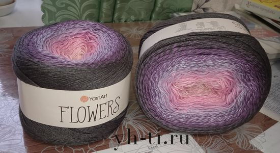 - Нитки п/хлопковые — YarnArt Flowers — 2 мотка по 250 грамм (в 250 граммах — 1000 метров)