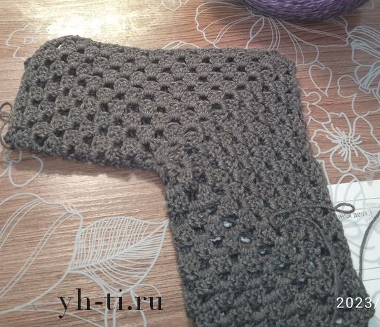 Разворачиваемся и провязываем 2 столбика с накидом под следующую арку