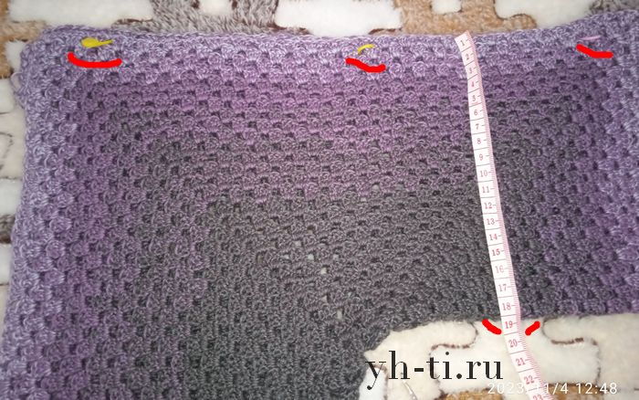 Когда ширина рукава достигла 19 см, я отделила его маркерами