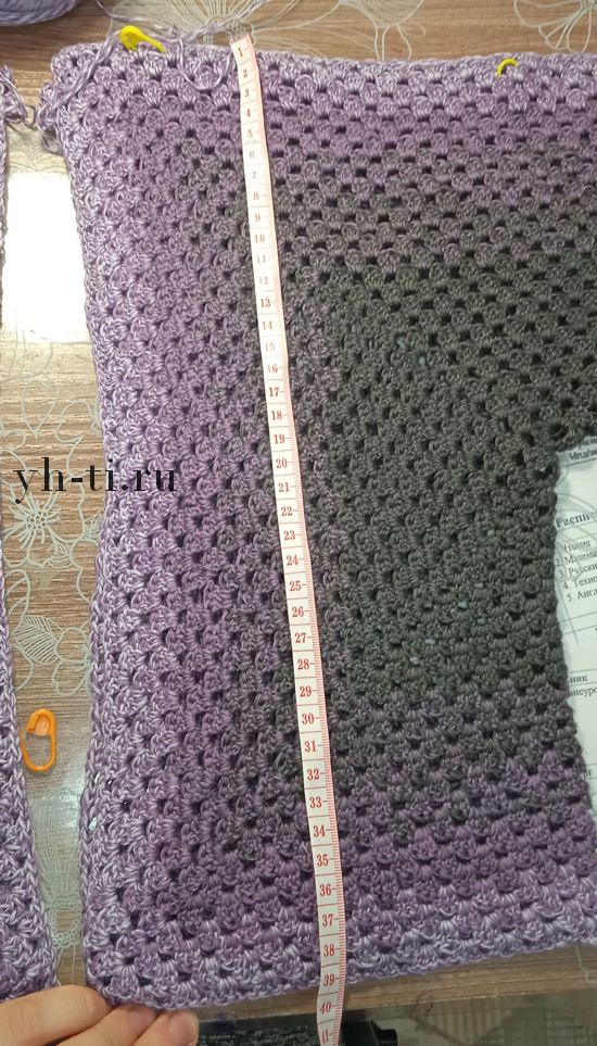 В процессе вязания примеряем кардиган и понимаем, где нужно остановиться. Если вяжите для другого человека, то потребуется измерить обхват груди, руки (в самой широкой части) и спросить желаемую длину и степень свободы облегания.