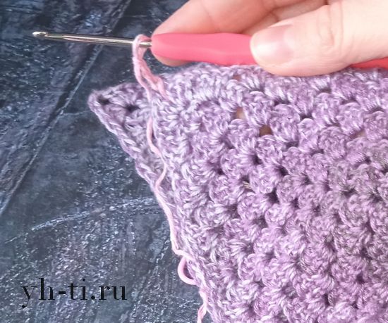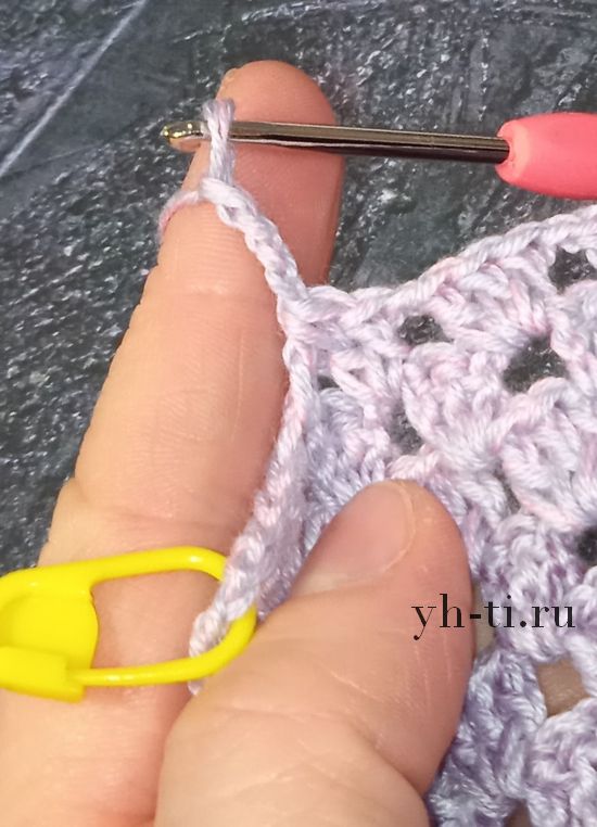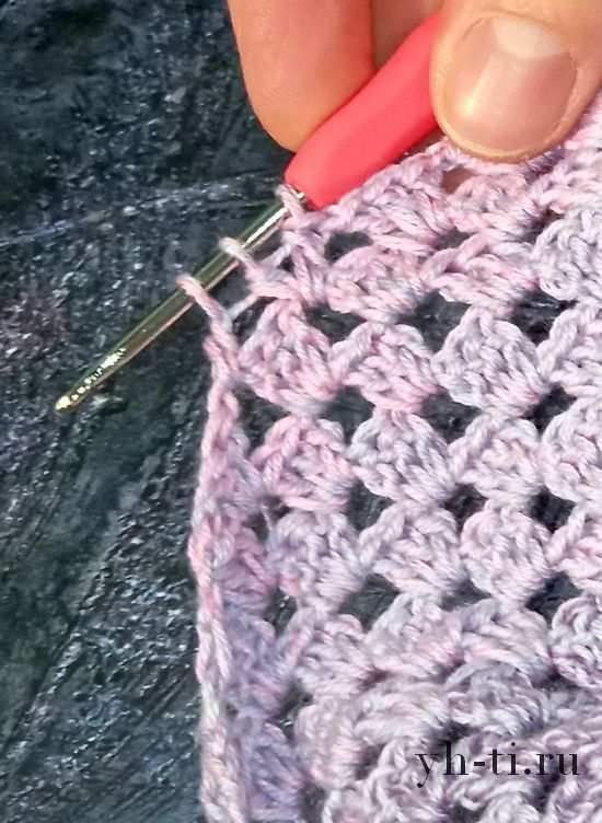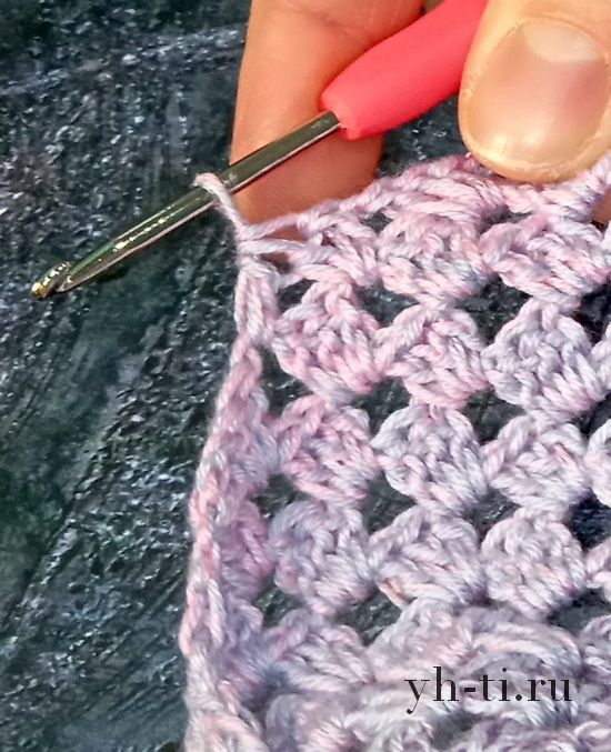 В уголках между группами столбиков вяжем по 3 воздушные петли, в остальных случаях — по 1 возд. петле.