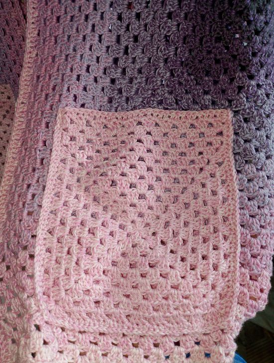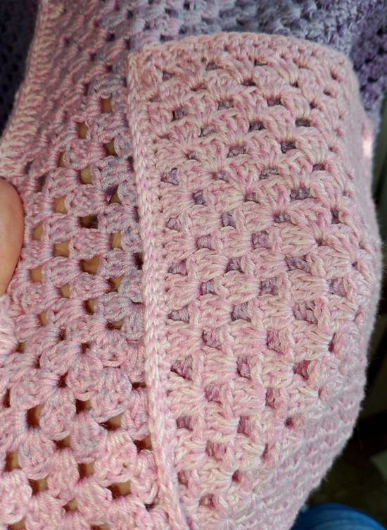 По схеме обычного бабушкиного квадрата связала карманы. Чтобы они получились прямоугольными, сверху пару рядов связала поворотными рядами.