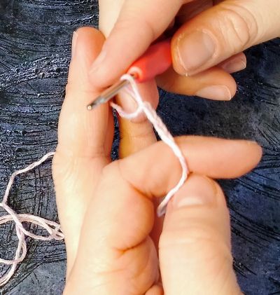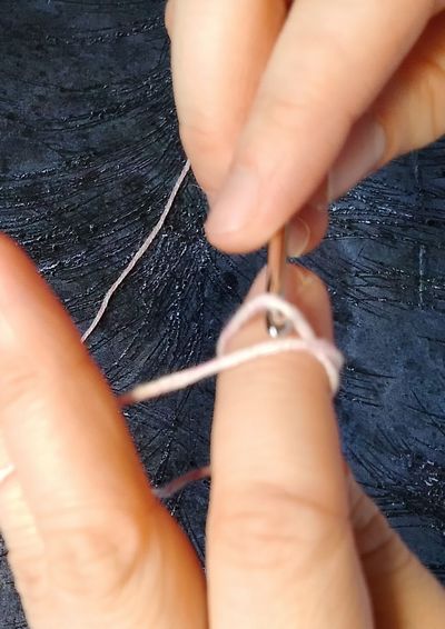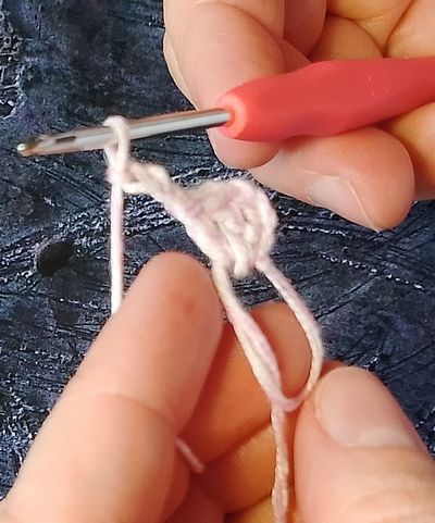 Делаем накид и провязываем 2 столбика с накидом в кольцо