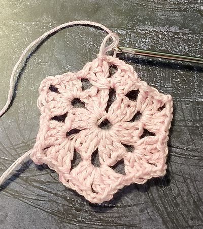 Совет: Рекомендую вязать 2 шестиугольника параллельно, так удобнее примерять. И так вы точно не забудете, как вязался тот или иной элемент.