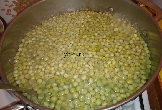 Дальше дело пойдёт быстрее. Горошек промываем и засыпаем в кастрюлю. Его объем и вес не так важен. Главное, чтобы кастрюля была заполнена горохом не более, чем наполовину, иначе не удобно будет варить. У меня гороха было много, поэтому я варила его тремя партиями.