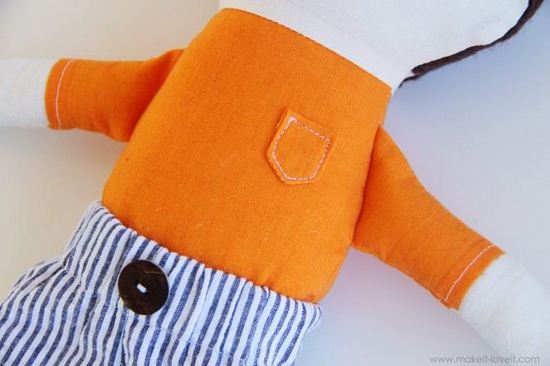 Выверните куклу и заполните ее наполнителем. Вручную зашейте нижний открытый край. Основная работа закончена, но остались еще детали.