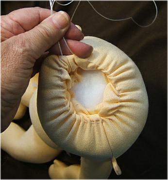 Присборьте отверстие на голове капроновой нитью, нить не обрывайте.