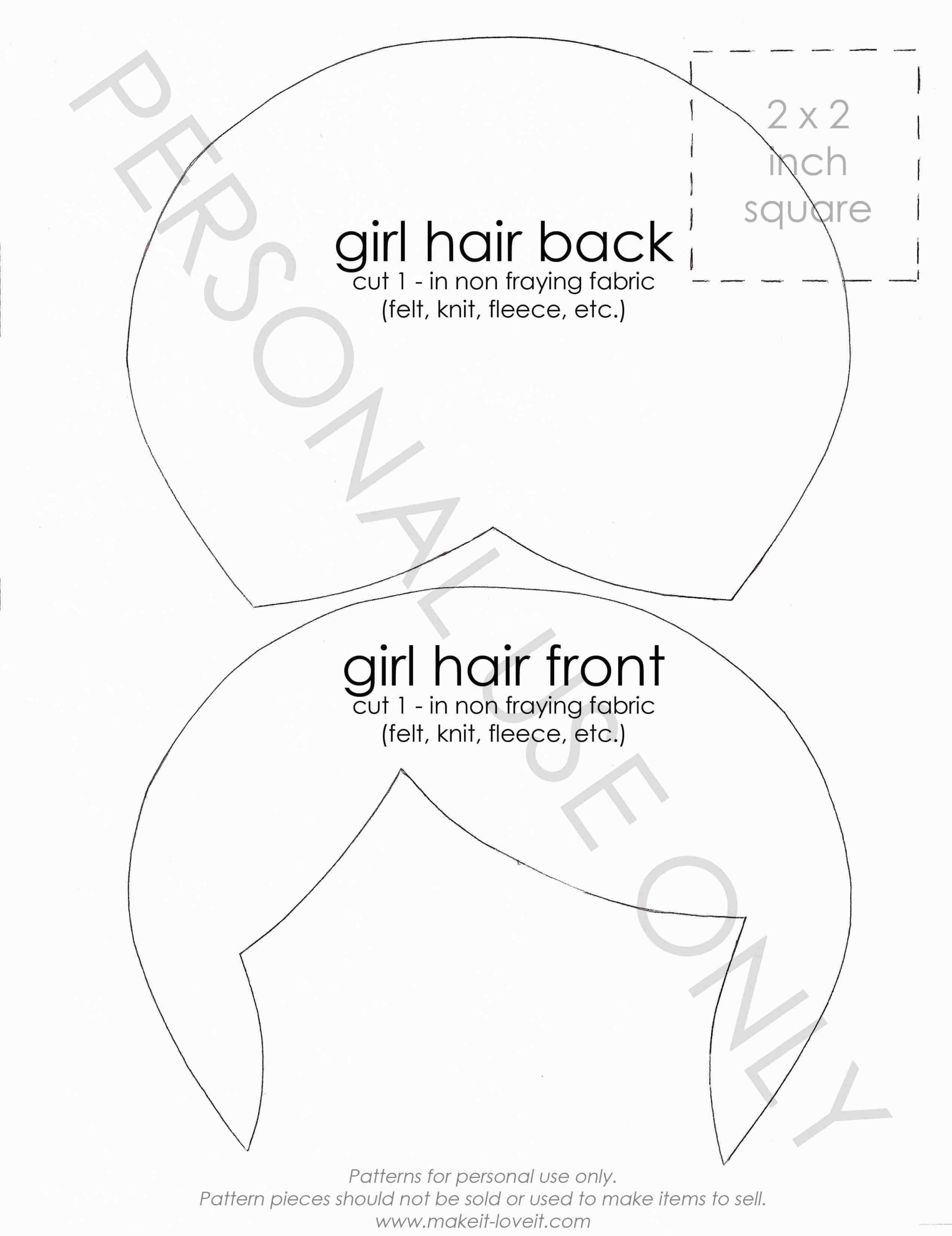 Волосы. Обрезки, оставленные от основных деталей, могут пригодиться для создания волос. Вырежьте и сшейте своеобразный “парик”, наденьте его на голову и пришейте невидимыми стежками.