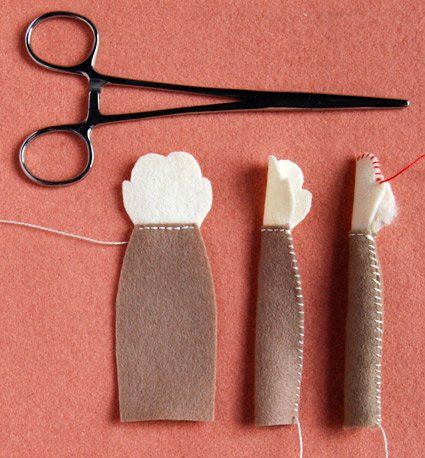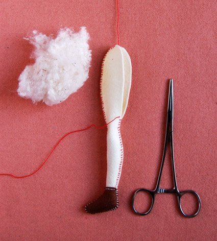 Сшейте туловище, оставив небольшой участок открытым. Заполните туловище наполнителем и закройте открытый участок.