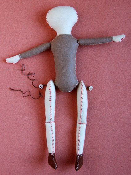 Для обуви использовался фетр. По форме они повторяют изгибы ноги куклы и пришиваются по верху на детали ног.
