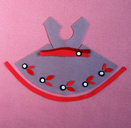 Платье. Какая же кукла без нарядного платья! Вырежьте детали наряда и сшейте. В будущем для куколки можно будет шить и другие интересные платьица, а пока нарядим ее вот в такой цветочный костюм.