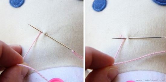 Для глаз нужно вырезать маленькие кружки и пришить мелкими стежками.