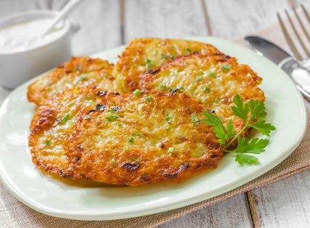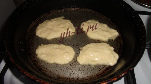 Обжариваем оладьи-драники с двух сторон. Подаем со сметанкой!