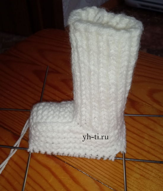 Пинетки вяжутся сверху-вниз, то есть начинаем работу с резинки. На мой взгляд, это гораздо удобнее, чем вязать со стопы.