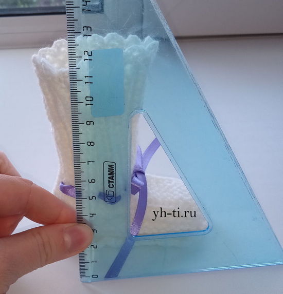 Есть еще один способ обвязки края пинетки. Это уже рюши. Его я тоже опробовала, пинетка получается красивая и воздушная. Как вязать, показано на видео ниже с 18:39 мин. (время уже установлено). Однако этот способ немного посложнее и подольше. Чтобы обвязать нашу пинетку такими рюшами, нужно поднять петли с края резинки и продолжить вязание, как на видео.