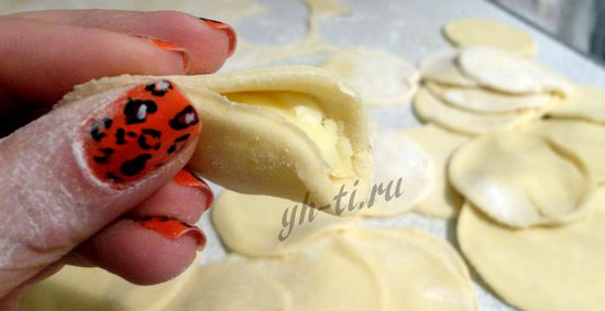 Еще один замечательный рецепт. Желательно использовать суховатый творог, т. к. если начинка будет жидкой, лепить будет проблематично. Из этих же соображений рекомендуется добавлять в начинку только желтки.