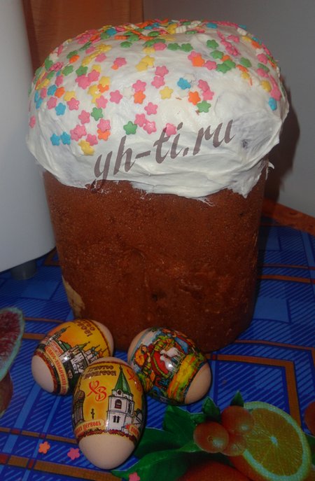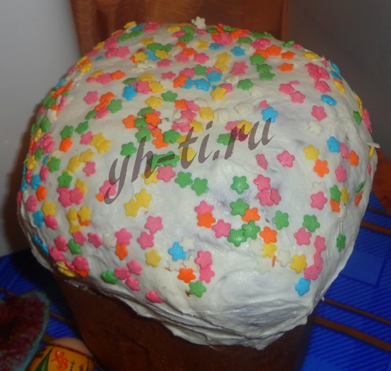 Глазурь я использую покупную, а также украшаю кулич красивыми посыпками, которые тоже продаются в магазинах в неограниченном количестве.