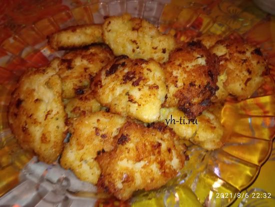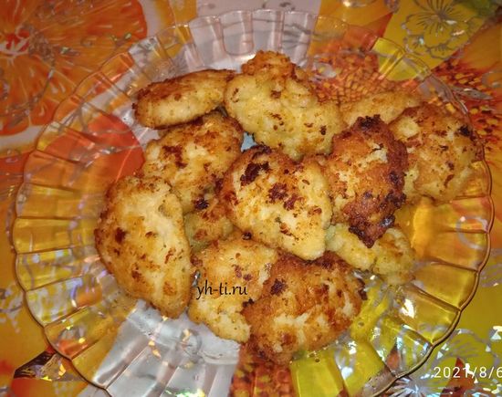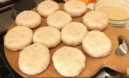 Формируем котлетки из фарша. Если есть панировочные сухари, то обваливаем котлеты в них и приступаем к жарке. В панировке получается вкуснее, вся сочность остаётся внутри. И на вкус такие котлеты напоминают наггетсы.