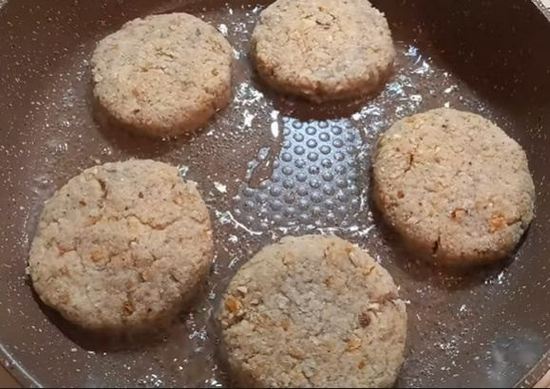 Сформировать котлетки, обвалять их в муке или сухарях и обжарить с двух сторон.