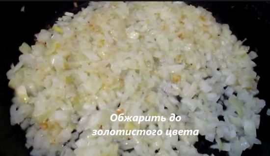 Репчатый лук мелко порезать и обжарить. Если луковица большая, то достаточно одной, если мелкие, то лучше взять две штуки. Излишки масла после обжаривания отцедить.