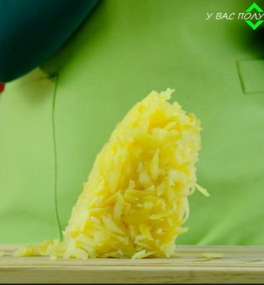 Как и в предыдущем рецепте, лук нужно порезать и обжарить. Картофель отварить и натереть на терке.
