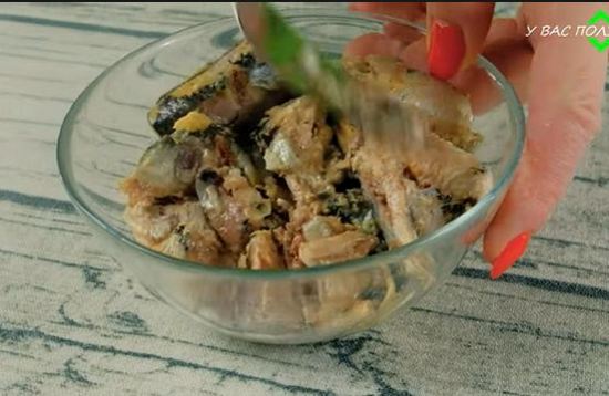 - Рыбные консервы (сайра, скумбрия, сардина или горбуша) — 1 банка,